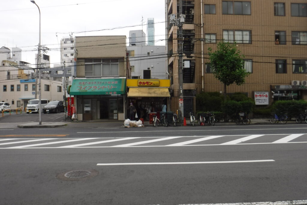 通天閣とは逆方向に巨大温泉施設『スパワールド 世界の大温泉』(ここのスパはスゲー、時間があれば入りたかった)が入るビルを抜け、堺筋線の動物園前駅、阪堺線の新今宮駅方面へ行くと、あいりん地区西成は目の前と、亀歩きでトボトボと歩く。想像していた通り、町の雰囲気がグラデーションのように徐々に埃っぽく、グレーに近い空気に彩られていく。歩いている人や自転車に乗っている人のなかに、いかにも酒焼けとニコチンヤニ顔で固形物を食べられない身体つきの男たちの姿がチラホラと現れる。ここでの目的は、今や西成で一番有名だと言っても過言ではない「鉄板焼きホルモンやまき」なのだが、地図で見ると、西成地域ご用達スーパー「玉出」のすぐ近くということで、当てにならない方向感覚で向かう。10分ほどふらつくと、目の前には、こちらもかの有名な「あいりん福祉センタービル」が目の前に聳えている。そして、なにを間違えたのか、そのビルの周辺を歩けば、目的地に辿りつけたのであろうが、そのまま環状線今宮、浪速地区方面へ行ってしまい、迷宮状態。目指すはスーパー「玉出天下茶店」なのに、ここは「大国店」。一体どういうことと、これぞお上りさん状態、いま一度地図を確認したのである。