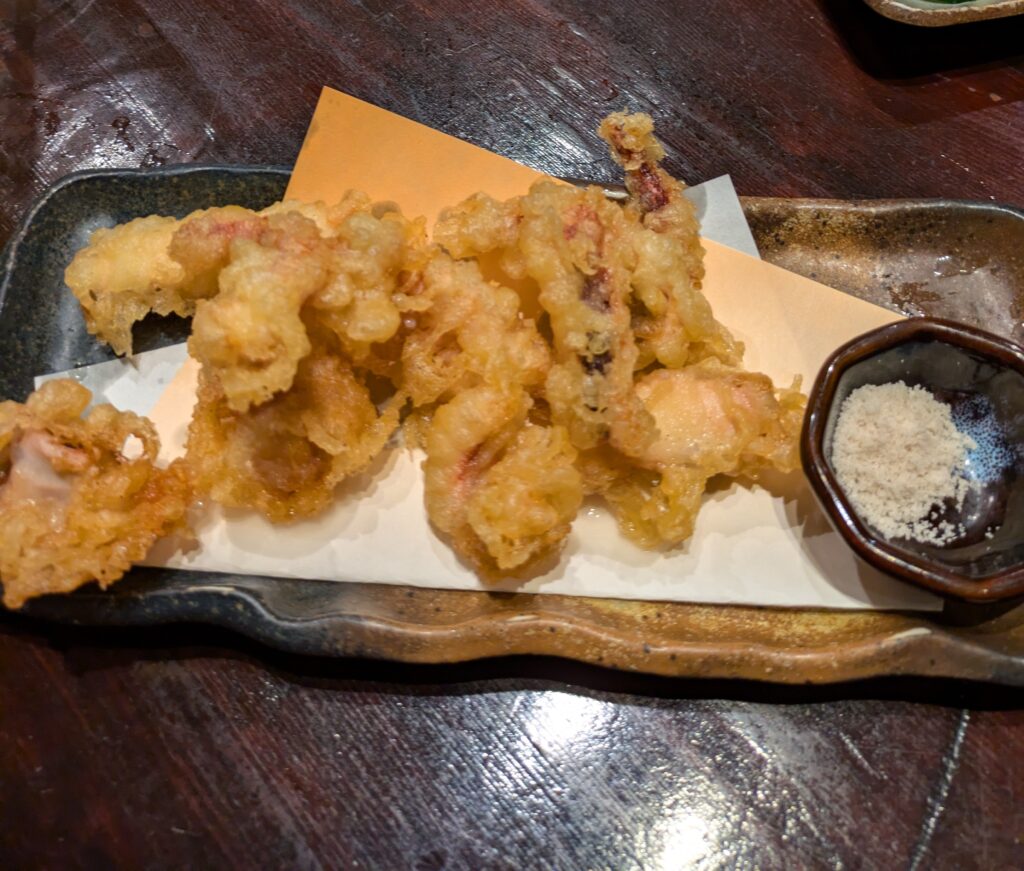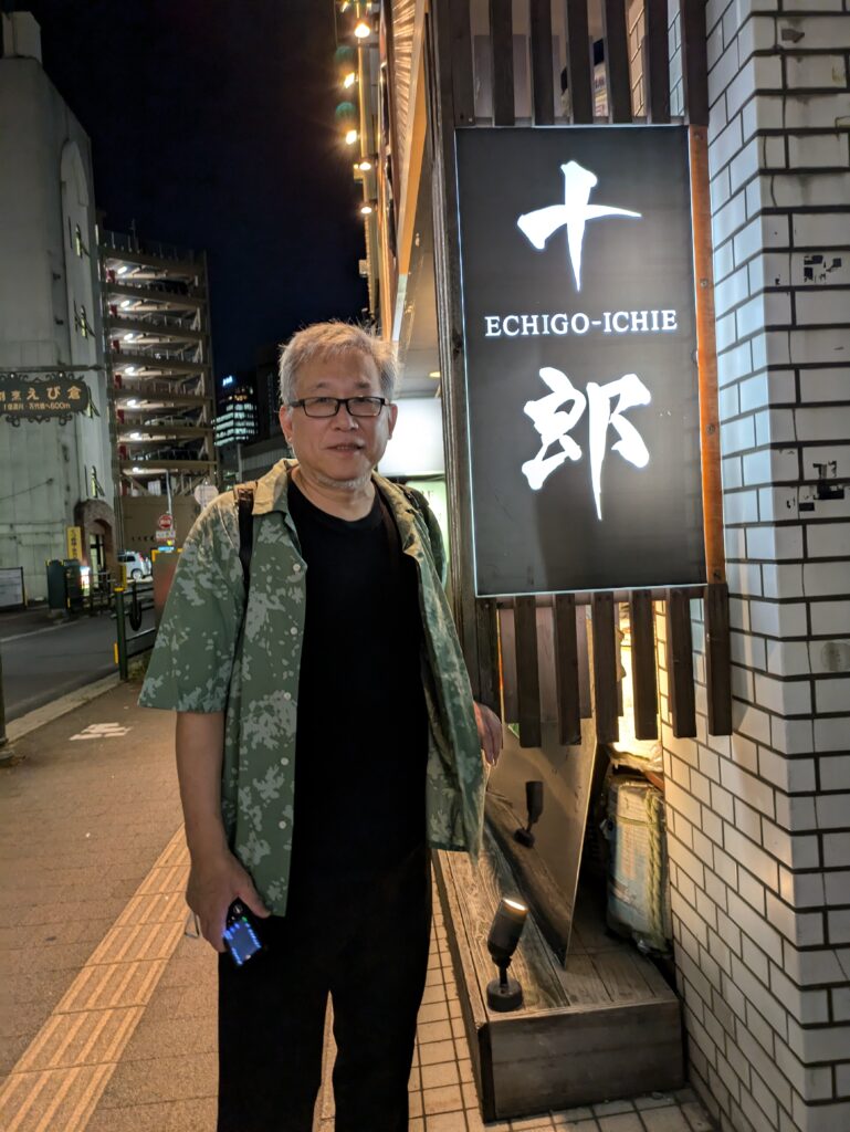 追ってすぐに刺身も到着。中トロ、エビ、タイ、のどぐろ、タコ組み合わせ。どれもさすがに冷凍ものなどなく新鮮そのもの、活き活きしている。また麒麟山サワーお替りし、スルメイカの天ぷらと合鴨のロース煮と秋茄子のおひたしをオーダー。店の選択は間違いなかったと、さすが「十郎」(どっちの「十郎」だかわからない)に間違いはないと、しばし、ご満悦の「十郎」であった。普段は、糖尿なので、日本酒を控えているのだが、この後、銘酒(越の景虎と雪紅梅)を何杯か飲み、店を出たのであった(新潟で日本酒を飲まないのは野暮天だろう)。本日は長い列車旅だったが、幸先の良いスタートが切れたと「十郎」にお別れして「十郎」は疲れが溜りながらも足取り軽く宿まで帰り、その後、当然朝まで爆睡したのであった。因みに居酒屋の「十郎」の正式名称は越後一会十郎だということ。