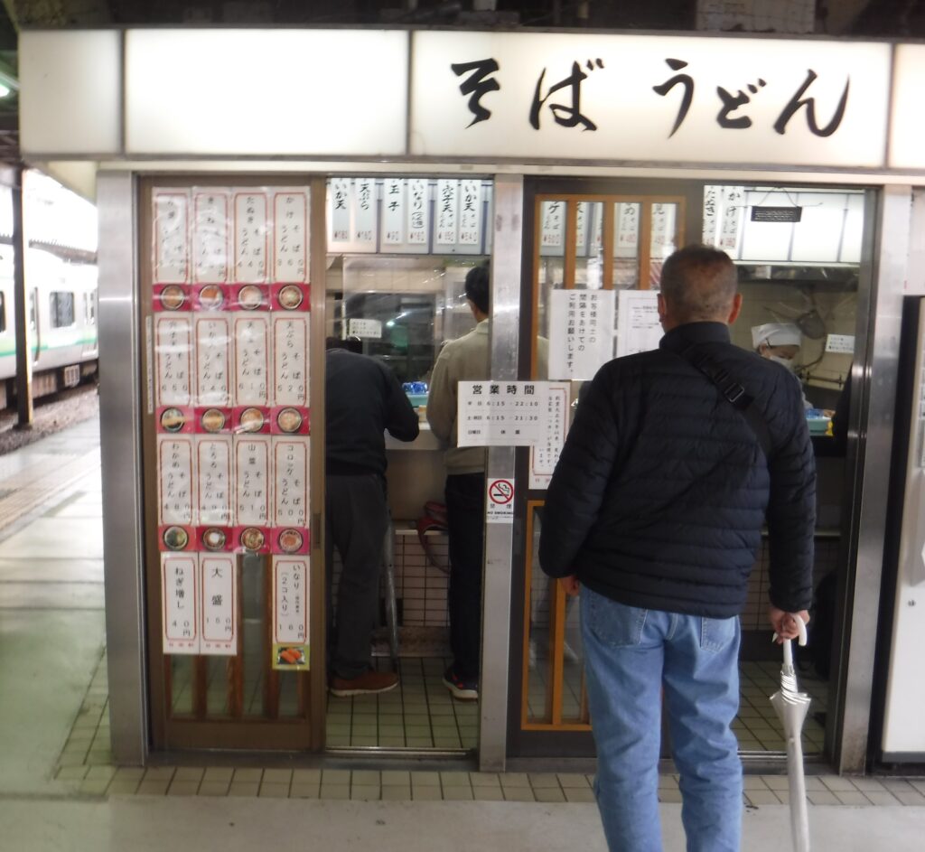 No.110 神奈川県横浜市神奈川区東神奈川駅上りホーム「日栄軒」の立ち食いそば・うどんは変わらないことの良さを教えてくれる、横浜三大駅そばの一つである。